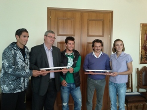 Τον Περιφερειάρχη Ηπείρου κ. Αλέξανδρο Καχριμάνη και τον Αντιπεριφερειάρχη, αρμόδιο για θέματα Πολιτισμού – Αθλητισμού και Παιδείας κ. Παντελή Κολόκα, επισκέφτηκαν σήμερα οι Ηπειρώτες παγκόσμιοι πρωταθλητές κωπηλασίας Αλεξάνδρα Τσιάβου, Γιώργος Τζιάλλας και Γιάννης Τσίλης, οι οποίοι και τους ευχαρίστησαν για την ηθική υποστήριξη της Περιφέρειας, ενόψει της συμμετοχής τους στους Ολυμπιακούς Αγώνες του Λονδίνου. ο Περιφερειάρχης τους συνεχάρη για τις συνεχόμενες επιτυχίες τους σε μεγάλες αθλητικές διοργανώσεις, τονίζοντας ότι αποτελούν παράδειγμα για όλους και ειδικότερα για τους νέους, διαβεβαιώνοντάς τους ότι η Περιφέρεια θα συνεχίσει να είναι δίπλα τους, αξιοποιώντας παράλληλα την παρουσία τους στους Ολυμπιακούς Αγώνες και για την προβολή της Ηπείρου. Τους αθλητές συνεχάρη και ο Αντιπεριφερειάρχης κ. Παντελής Κολόκας, τονίζοντας ότι η σκέψη μας είναι κοντά σε όλους τους Έλληνες αθλητές και ιδιαίτερα στους Ηπειρώτες που θα αγωνιστούν στους Ολυμπιακούς, προσθέτοντας ότι μεγαλύτερη αξία έχει για τους αθλητές η στήριξη τους κατά τη διάρκεια της προετοιμασίας και όχι στα επινίκιά τους. Οι αθλητές πρόσφεραν σε Περιφερειάρχη και Αντιπεριφερειάρχη, ως αναμνηστικό δώρο από μια μινιατούρα της βάρκας με την οποία αγωνίζονται στις μεγάλες αθλητικές διοργανώσεις.