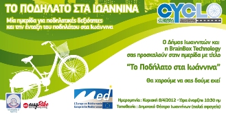 Ημερίδα με θέμα το ποδήλατο στα Ιωάννινα οργανώνει ο Δήμος Ιωαννιτών με την υποστήριξη της BRAINBOX Technology την Κυριακή 8 Απριλίου στις 10.30 πρωί, στο χώρο του δημοτικού θεάτρου Ιωαννίνων στα Παλιά Σφαγεία. Στο πλαίσιο της ημερίδας θα γίνει η παρουσίαση του προγράμματος CYCLO- Πόλεις δικυκλιστών και του στρατηγικού σχεδίου για την ενσωμάτωση χρήσης του ποδηλάτου στον αστικό σχεδιασμό των Ιωαννίνων από τον κύριο Γεώργιο Αναστασούλη εκπρόσωπο του Δήμου Ιωαννιτών.   Κατευθύνσεις για την ανάπτυξη στρατηγικής ένταξης του ποδηλάτου και διδάγματα από την μέχρι σήμερα εμπειρία θα παραθέσει ο επικεφαλής της Mονάδας Bιώσιμης Κινητικότητας του Εθνικού Μετσόβιου Πολυτεχνείου καθηγητής Θάνος Βλαστός ενώ ο Δρ. Χρήστος Σιώζος, θα μιλήσει για ποδηλατικές δεξιότητες.   Η βασική ιδέα του έργου CYCLO βασίζεται στην προώθηση της χρήσης του ποδηλάτου ως μέσο μεταφοράς εντός πόλης με χαμηλό αντίκτυπο στο περιβάλλον που συμβάλει σημαντικά στην βιώσιμη κινητικότητα και βελτιώνει την ποιότητα ζωής στην πόλη.